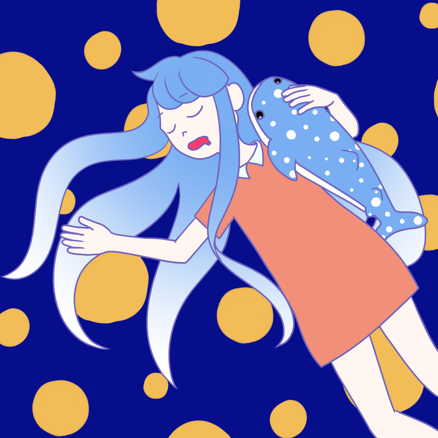 この琉ちゃんは、ジンベエザメのぬいぐるみを抱っこして眠っています。