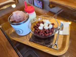 「豆と白玉を少しずつ氷のほうに移しながら食べてくださいね」と定員さんが言っていました。